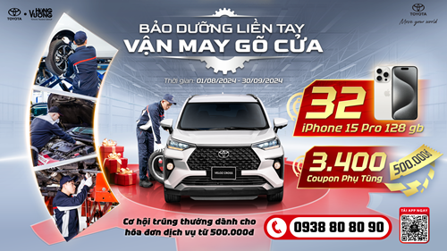 CHƯƠNG TRÌNH TRÚNG THƯỞNG “BẢO DƯỠNG LIỀN TAY-VẬN MAY GÕ CỬA” TẠI TOYOTA HÙNG VƯƠNG