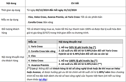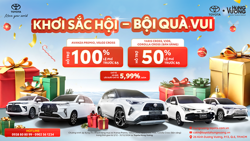 Chào đón Tháng 12/2024 - tháng của mùa lễ hội, Toyota Việt Nam đồng hành cùng Toyota Hùng Vương tiếp tục triển khai chương trình khuyến mại dành cho khách hàng mua mẫu xe Vios, Veloz Cross, Avanza Premio, Yaris Cross và Corolla Cross trong tháng 12/2024.