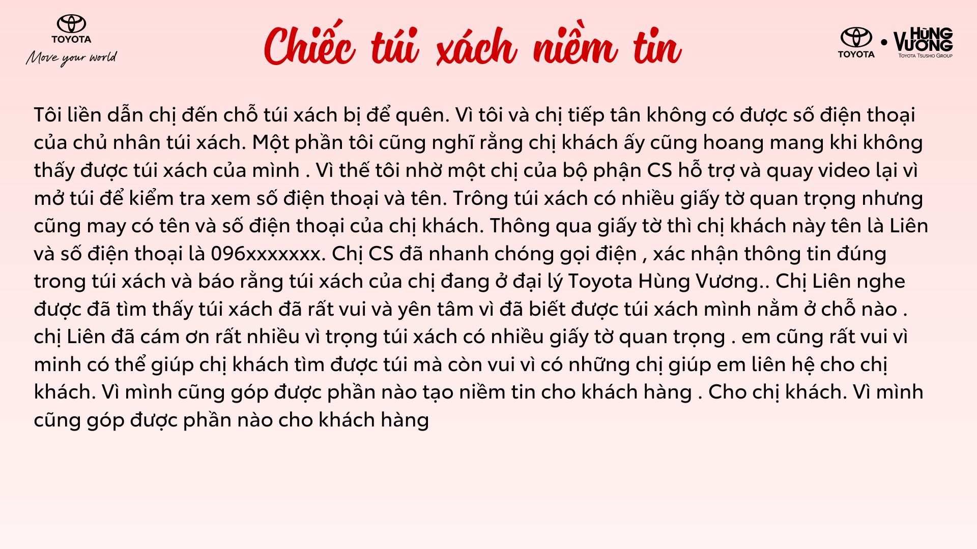 CÂU CHUYỆN ẤN TƯỢNG TỪ KHÁCH HÀNG TOYOTA HÙNG VƯƠNG - TOYOTA TÂN TẠO THÁNG 12 NĂM 2022