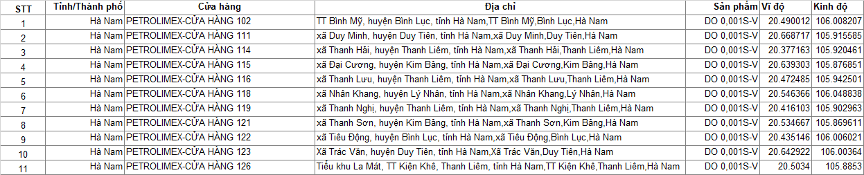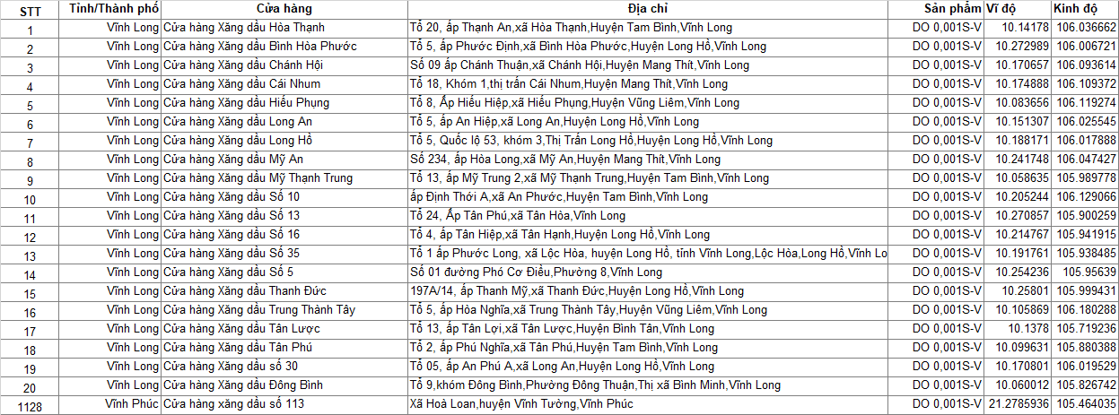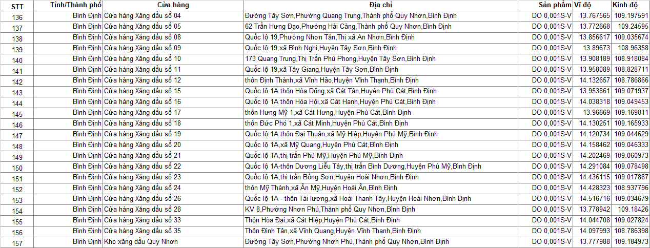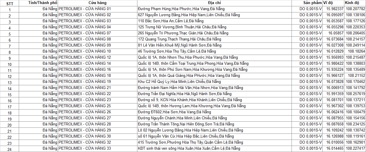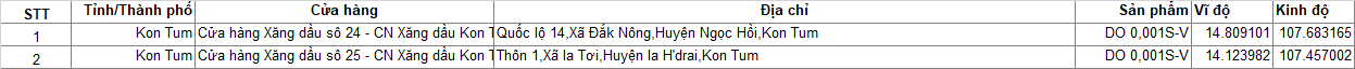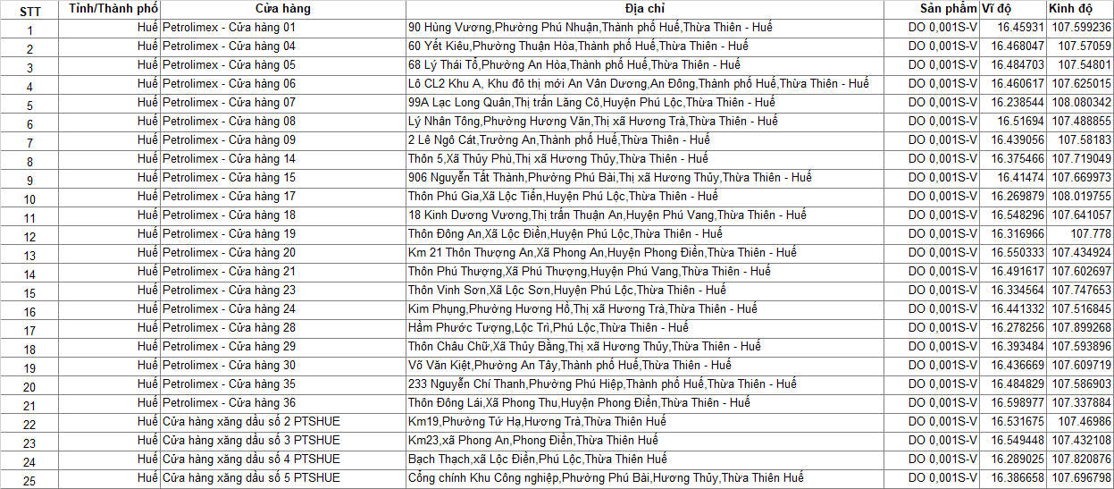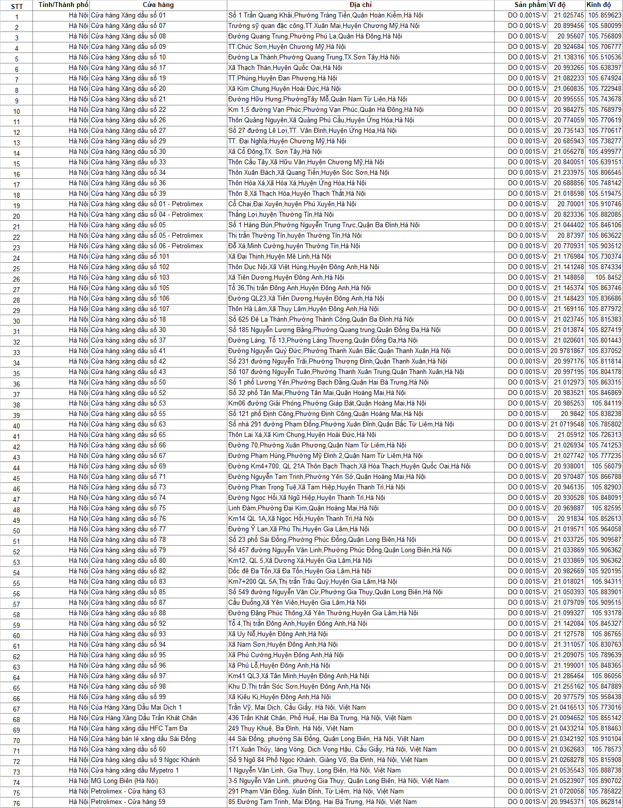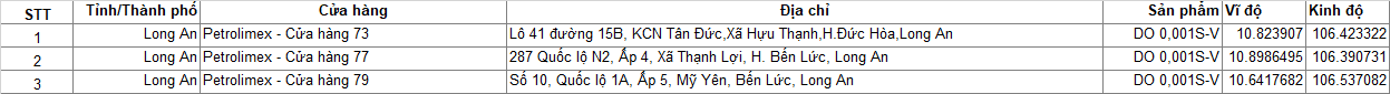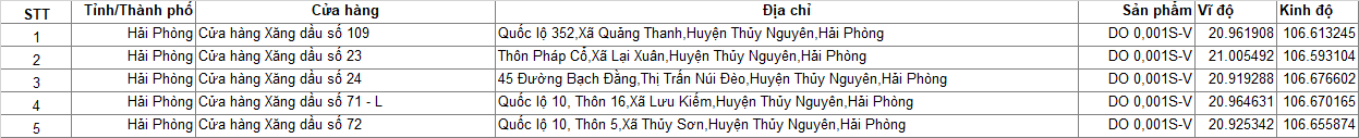 Danh sách cửa hàng Dầu cung cấp nhiên liệu tiêu chuẩn Euro 5