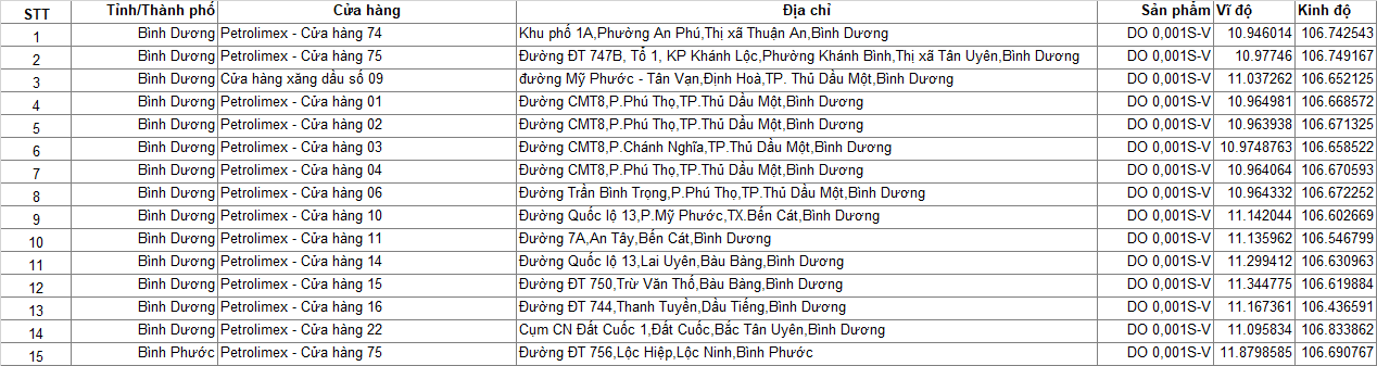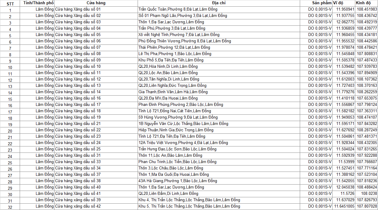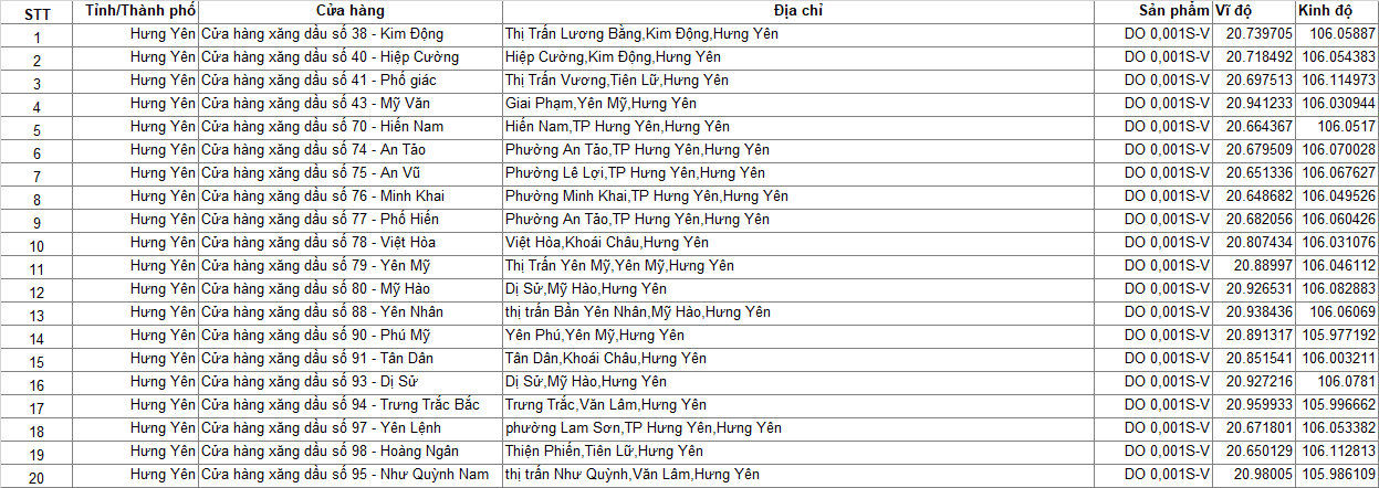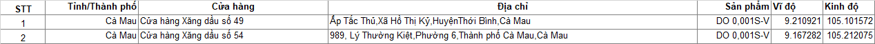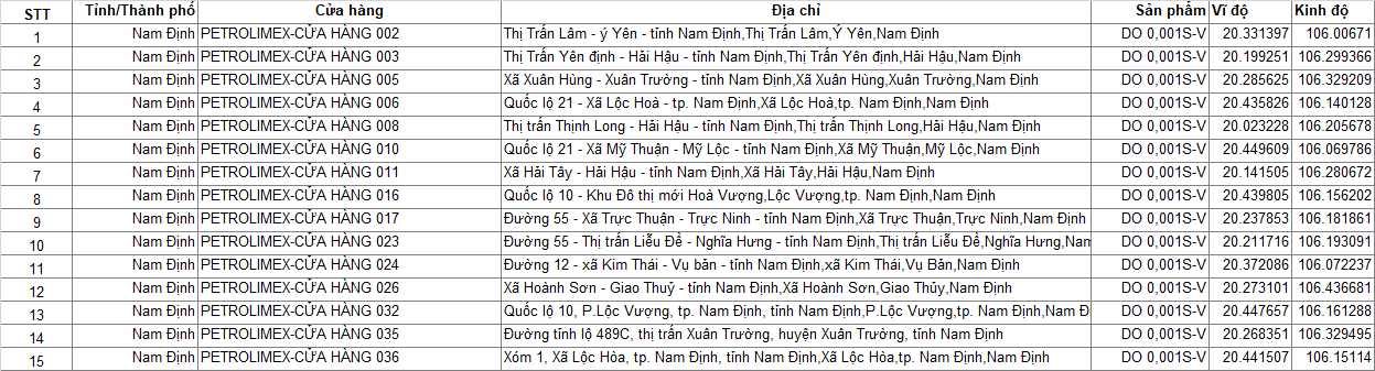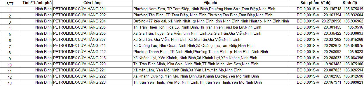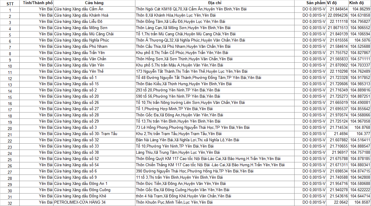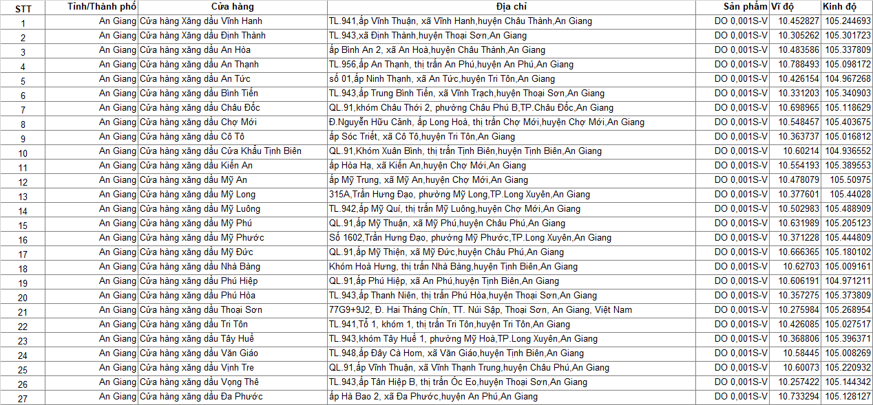 Danh sách cửa hàng Dầu cung cấp nhiên liệu tiêu chuẩn Euro 5