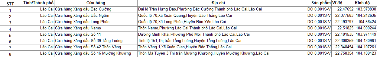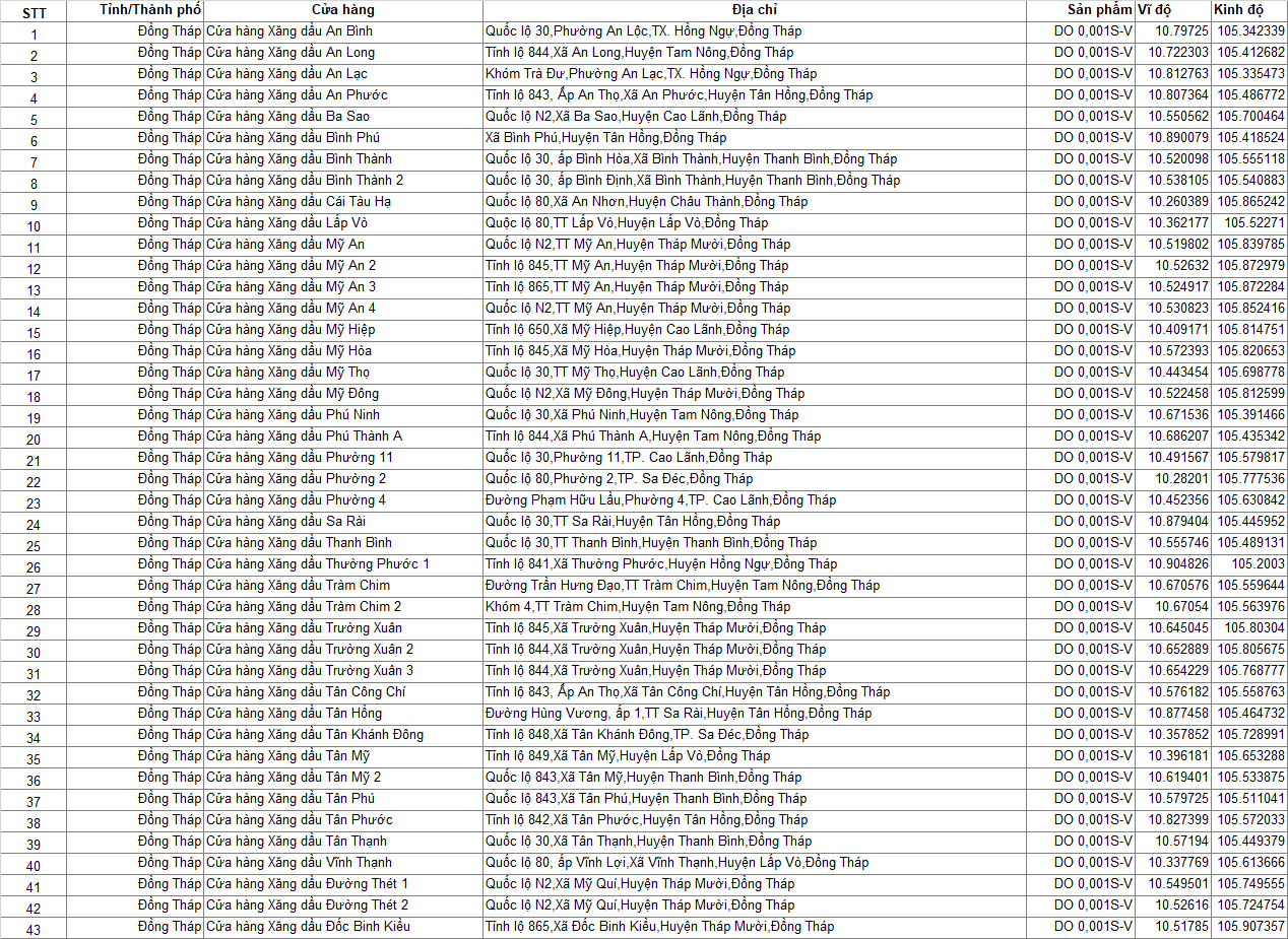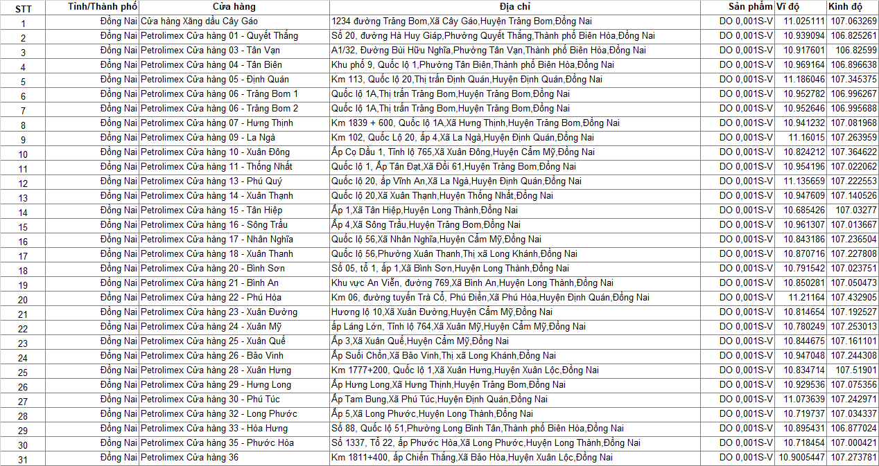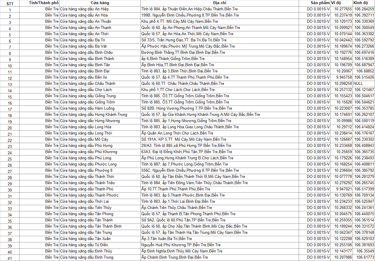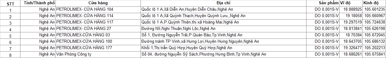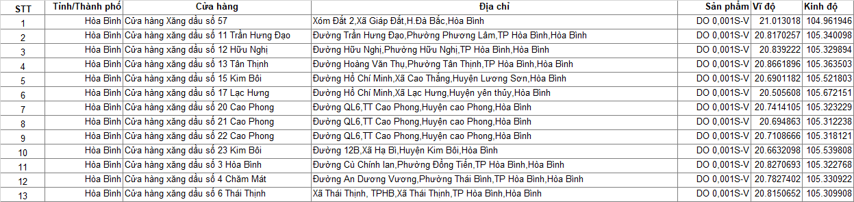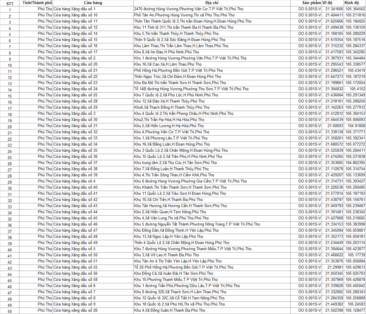 Danh sách cửa hàng Dầu cung cấp nhiên liệu tiêu chuẩn Euro 5