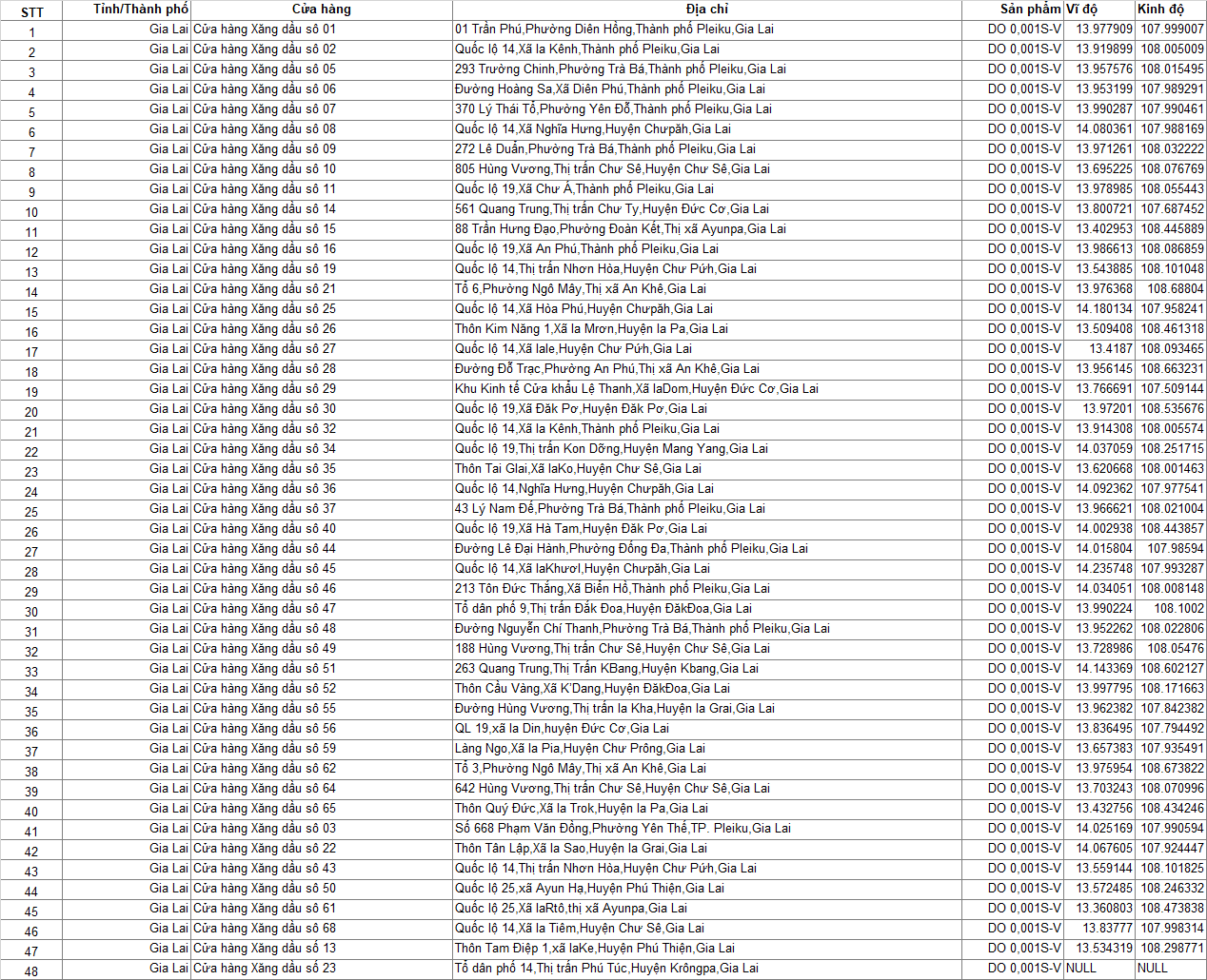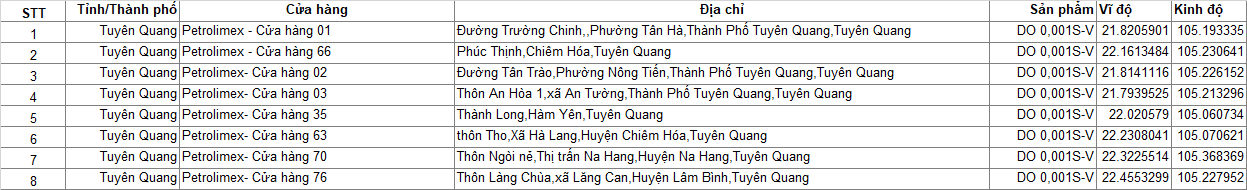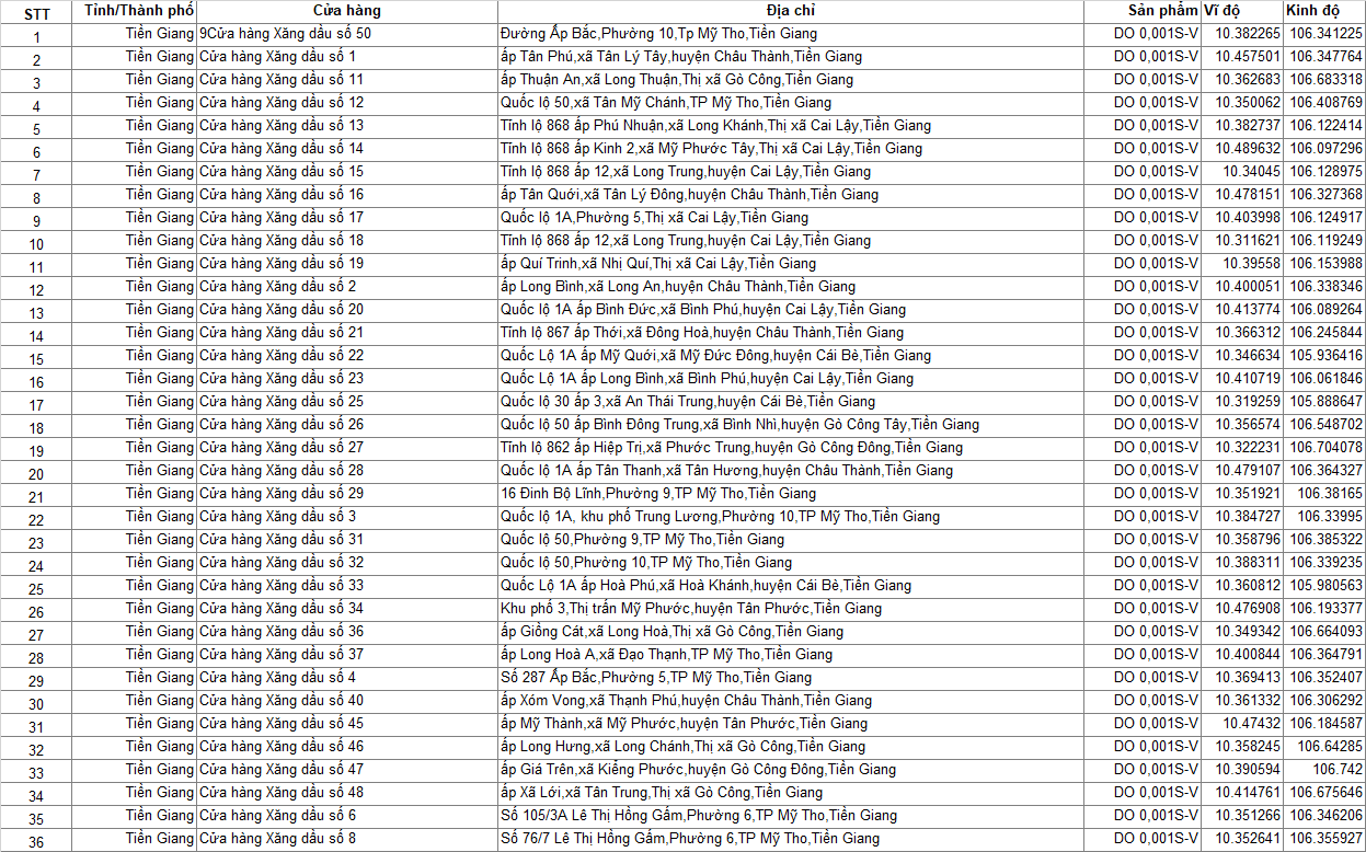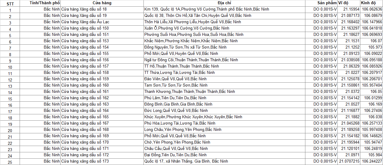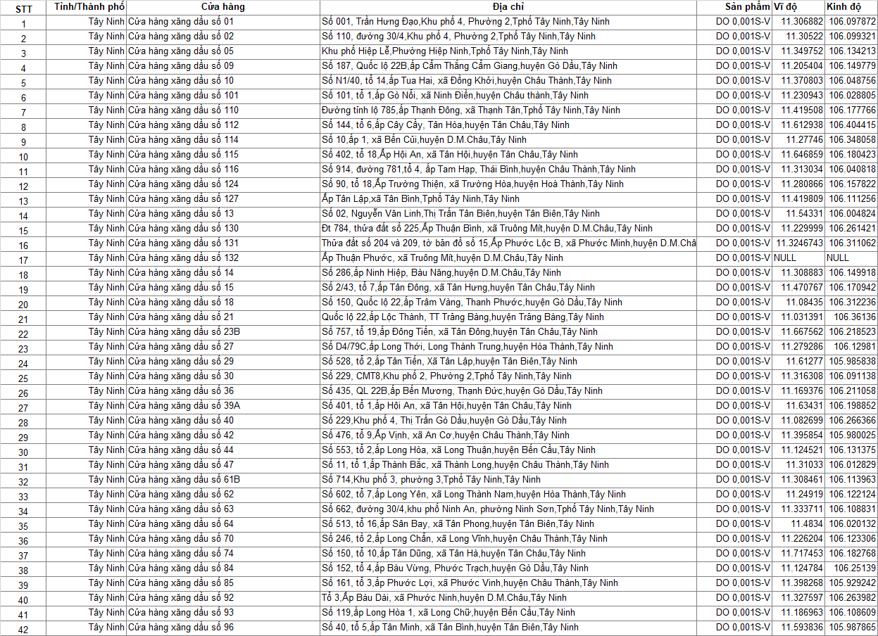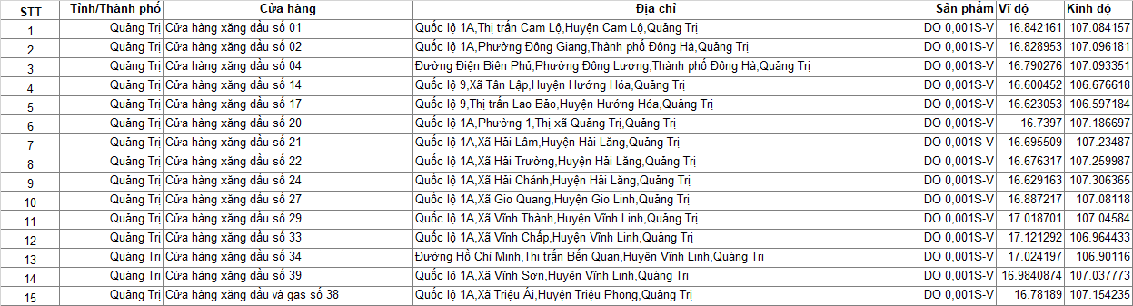 Danh sách cửa hàng Dầu cung cấp nhiên liệu tiêu chuẩn Euro 5