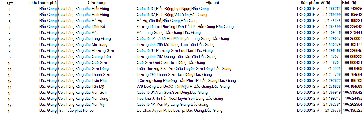 Cửa hàng xăng dầu Euro 5 ở Bắc Giang
