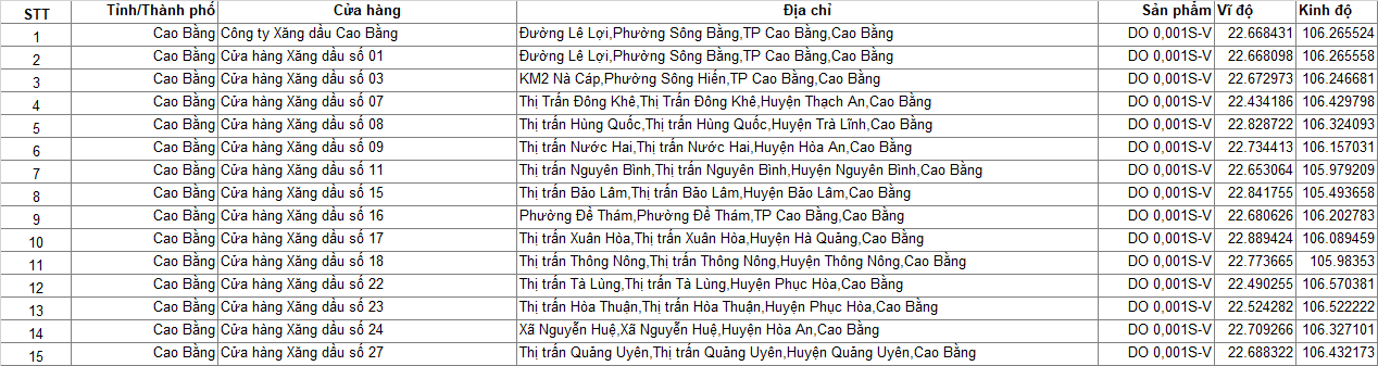 Cửa hàng xăng dầu Euro 5 ở Cao Bằng