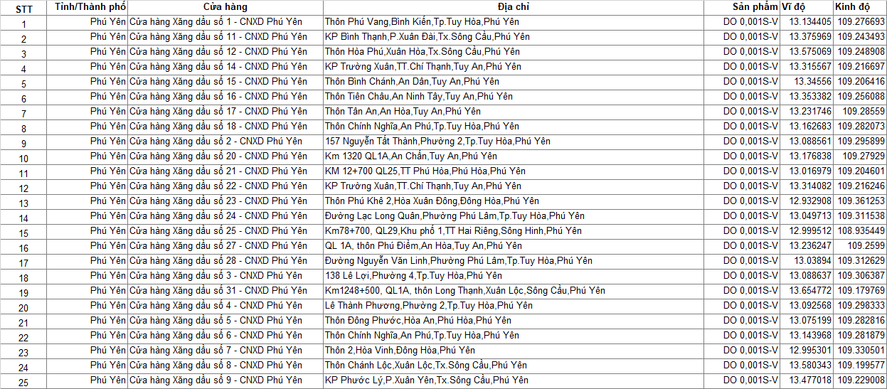 Cửa hàng xăng dầu Euro 5 ở Phú Yên