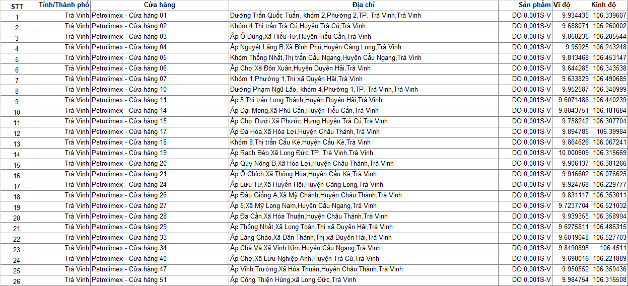 Cửa hàng xăng dầu Euro 5 ở Trà Vinh