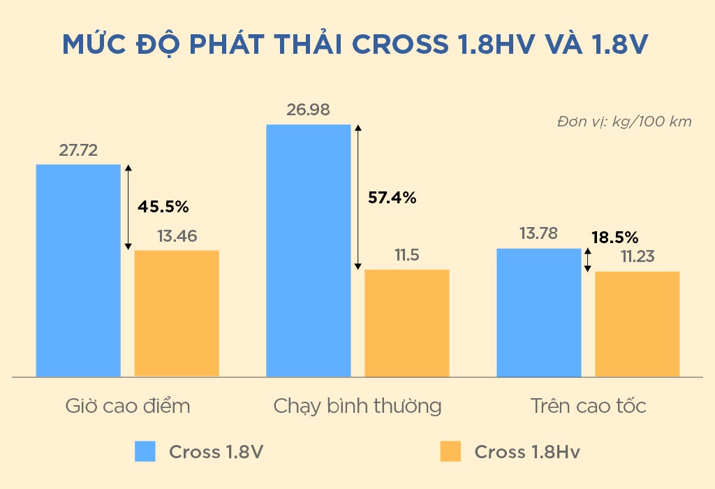 Để có cái nhìn khách quan, Toyota Việt Nam cùng Đại học Bách khoa Hà Nội thử nghiệm mức độ phát thải của hai chiếc Corolla Cross (1.8HV - công nghệ hybrid và 1.8V - động cơ xăng truyền thống) vào tháng 10-12/2020. Thử nghiệm được thực hiện và đo đạc nghiêm ngặt bằng thiết bị chuyên dụng trong cả phòng thí nghiệm và môi trường thực tế tại Việt Nam.