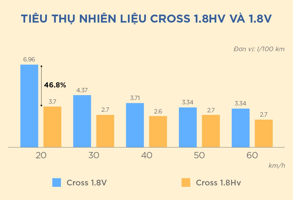 Chênh lệch lượng tiêu thụ nhiên liệu của xe hybrid và xe xăng cho thấy dòng HEV kinh tế hơn. So sánh lượng tiêu thụ nhiên liệu theo từng mốc vận tốc, phiên bản hybrid cho thấy khả năng tiết kiệm tối ưu ở vận tốc thấp, trong điều kiện di chuyển nội đô và thường xuyên tắc đường.