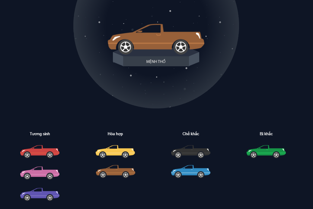 Vậy, Mệnh Thổ trong quy luật ngũ hành thì hợp với mệnh nào và màu xe hợp mệnh Thổ là những màu nào?