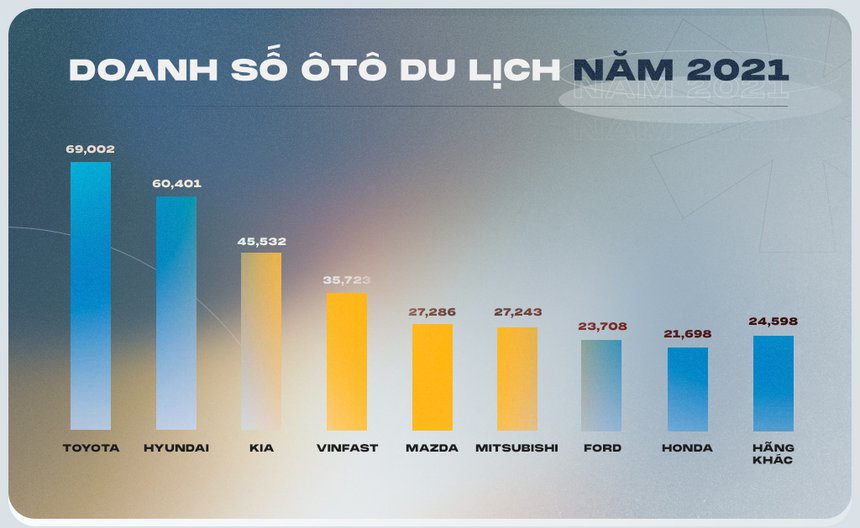Tính đến hết tháng 12/2021, Toyota Việt Nam đã bán được hơn 69.002 xe (bao gồm cả Lexus). Mặc dù hãng có mức tăng trưởng âm khoảng 4,66% so với năm 2020 nhưng đây cũng chính là hãng có mức giảm doanh số thấp nhất trong nhóm các nhà sản xuất Nhật Bản thuộc VAMA, trong khi một số hãng có mức giảm tới 15%.