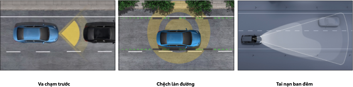 Trong một số tình huống đặc biệt, Hệ thống an toàn Toyota TSS được thiết kế nhằm hỗ trợ khả năng nhận thức, ra quyết định và điều khiển xe với tốc độ cao. Gói an toàn này tích hợp những tính năng tiên tiến nhất, tập trung vào 3 mục tiêu chính: giảm thiểu va chạm hoặc ngăn chặn va chạm phía trước, hỗ trợ giữ làn đường và nâng cao an toàn khi lái xe vào ban đêm.