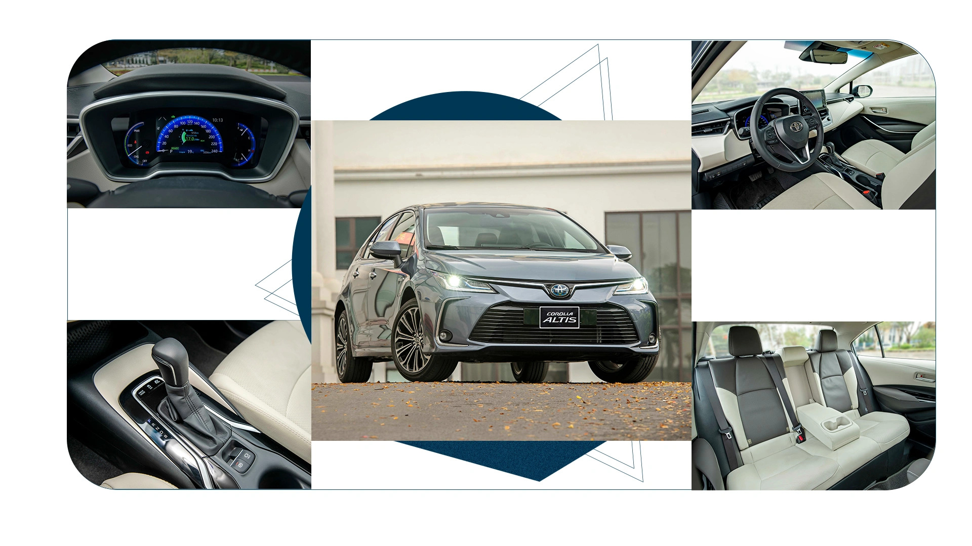 Khoang lái của Corolla Altis thế hệ mới được tinh chỉnh hoàn thiện hơn nhưng vẫn dựa theo triết lý thiết kế tinh tế, tối giản quen thuộc. Khu vực người lái có những cải thiện về tầm nhìn nhờ thay đổi về vị trí lắp đặt bảng điều khiển cũng như kính chiếu hậu, bên cạnh đó là thu hẹp cột A.