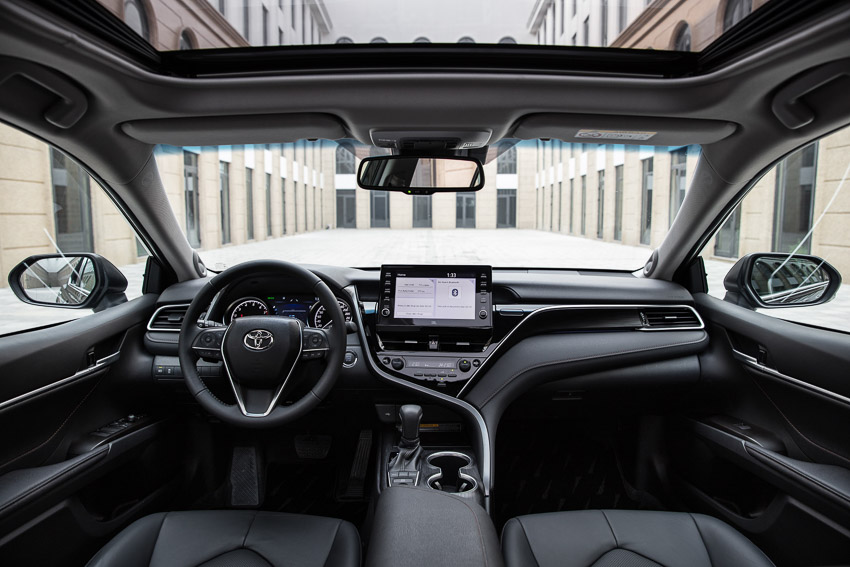 Toyota Camry sở hữu khoang lái chất lượng cao không chỉ hiện đại mà còn sắc sảo, tinh tế. Giao diện tập trung vào người lái, đồng thời vẫn mang lại sự thư thái tối đa cho hành khách phía sau. Đặc biệt trên phiên bản mới này, mẫu xe được trang bị thêm hàng loạt công nghệ hiện đại, tiện nghi như màn hình cảm ứng 9-inch (dạng nổi) kết nối điện thoại thông minh, sạc không dây, cửa sổ trời tiện ích cho người dùng.