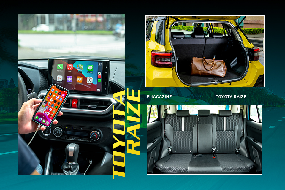 Triết lý làm xe thực dụng nhiều thập kỷ giúp Toyota ghi điểm với khách hàng. Raize sở hữu khoang cabin rộng rãi. Cả 5 vị trí đều thoải mái, kết hợp với 10 hộc chứa đồ được bố trí khắp nơi. Khoang hành lý sau của xe có thể tích 369 lít và hàng ghế sau có thể gập phẳng để chứa nhiều đồ đạc hơn.