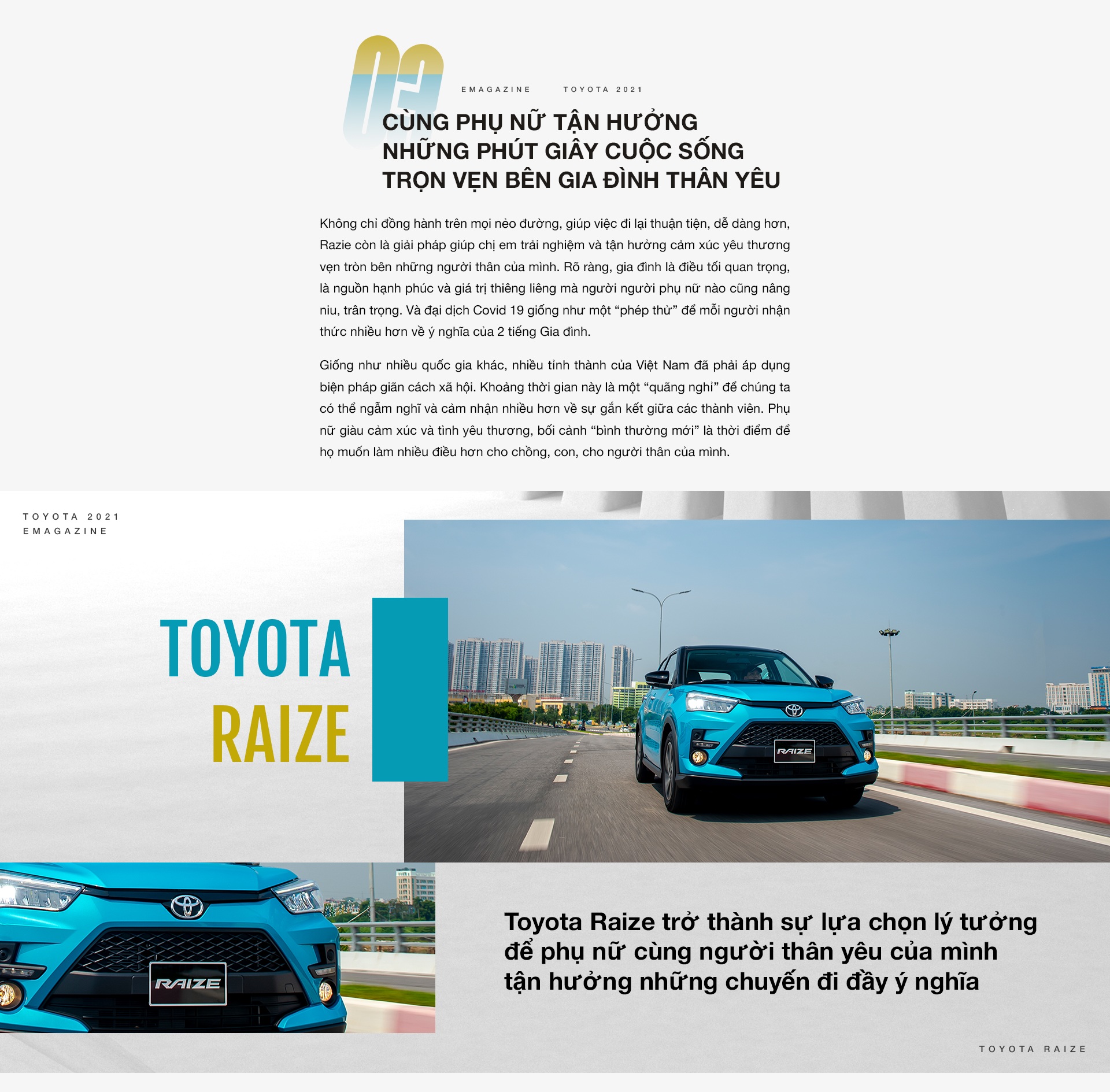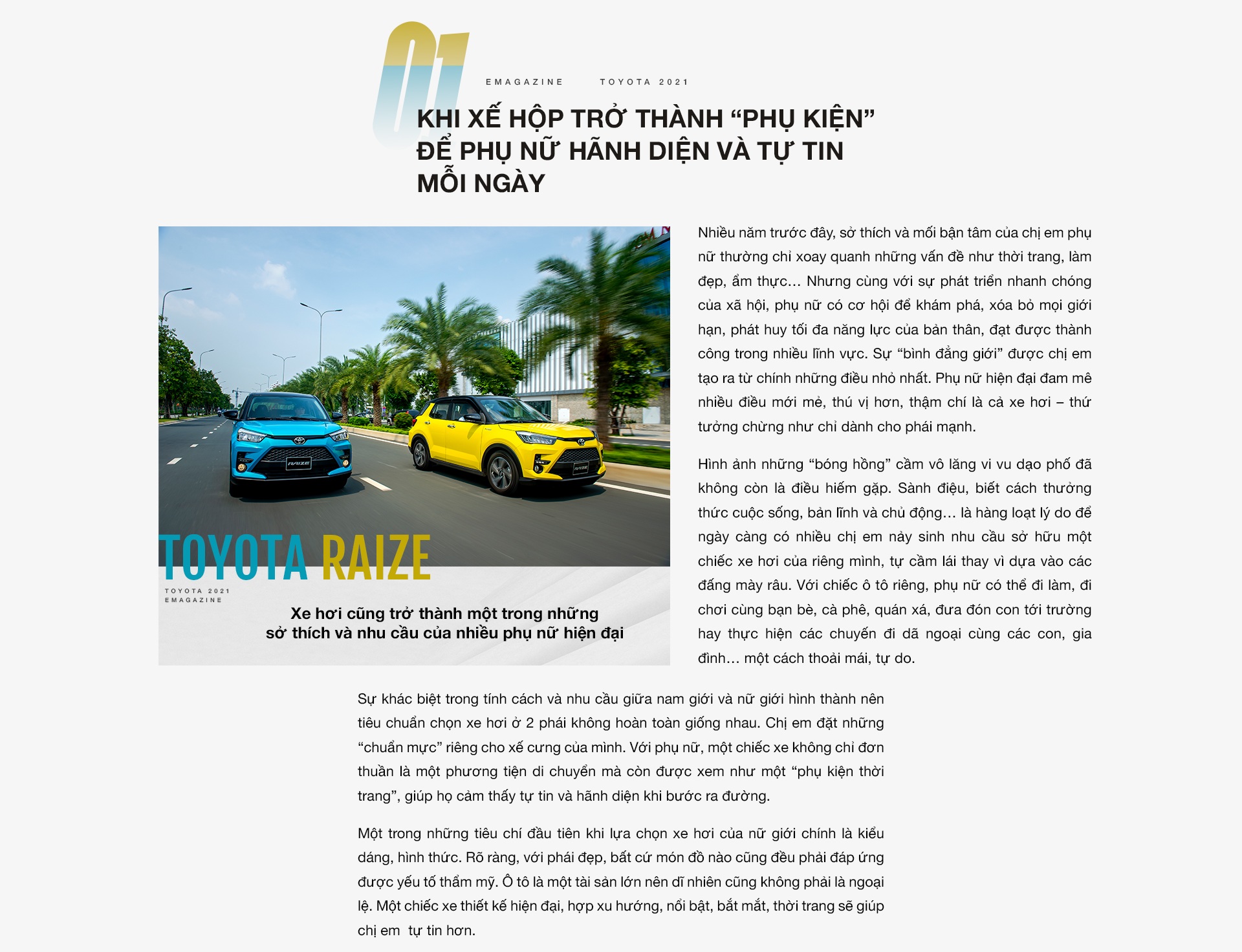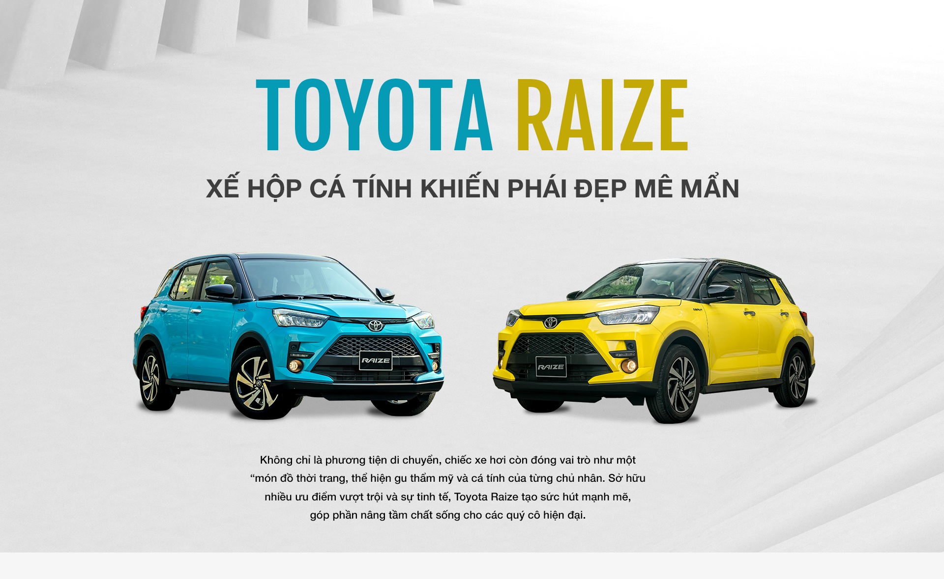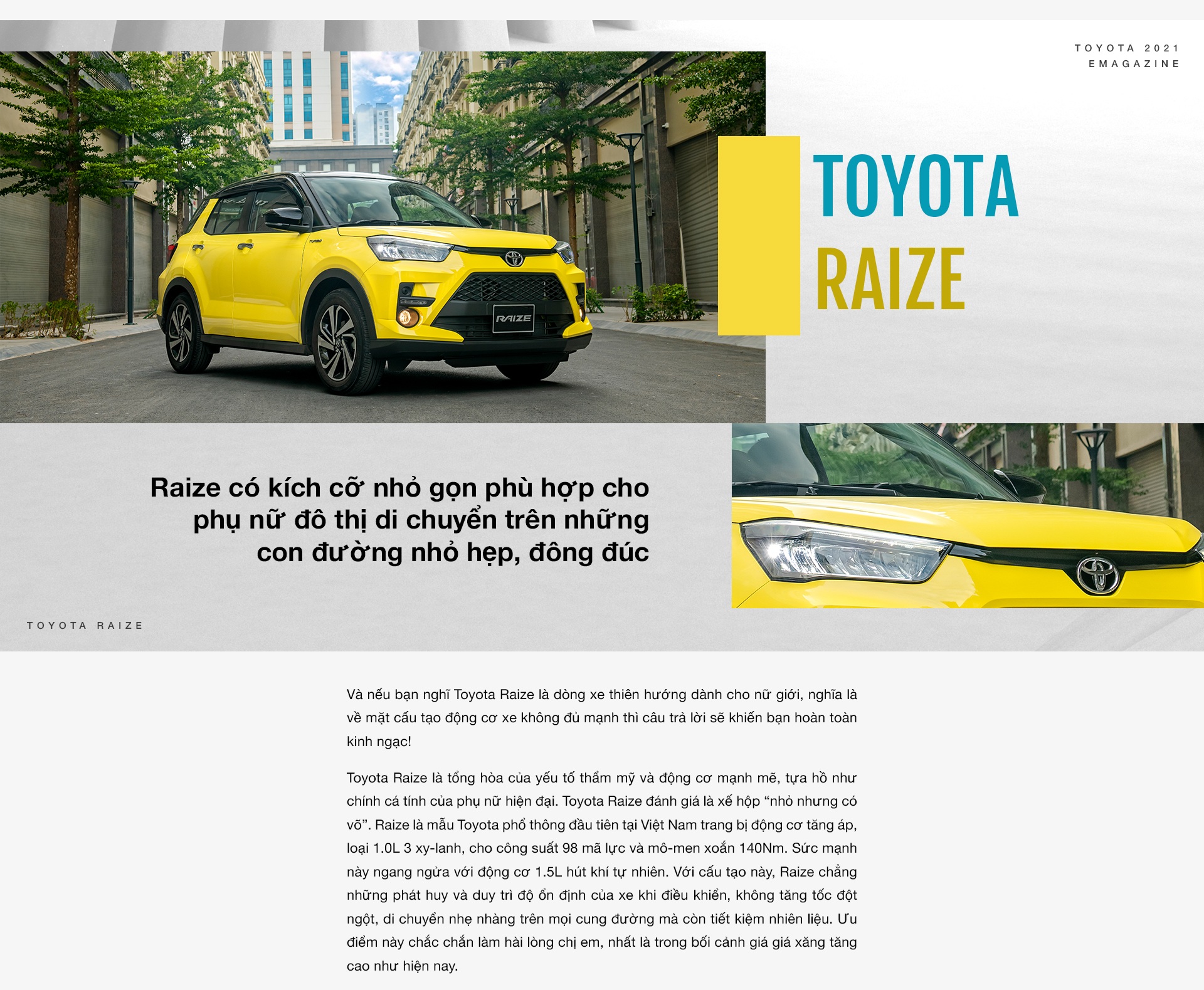 Không chỉ là phương tiện di chuyển, chiếc xe hơi còn đóng vai trò như một "món đồ chơi thời trang, thể hiện gu thẩm mỹ và cá tính của từng chủ nhân. Sở hữu nhiều ưu điểm vượt trội và sự tinh tế, Toyota Raize tạo sức hút mạnh mẽ góp phần nâng tầm chất sống cho các quý cô hiện đại.
