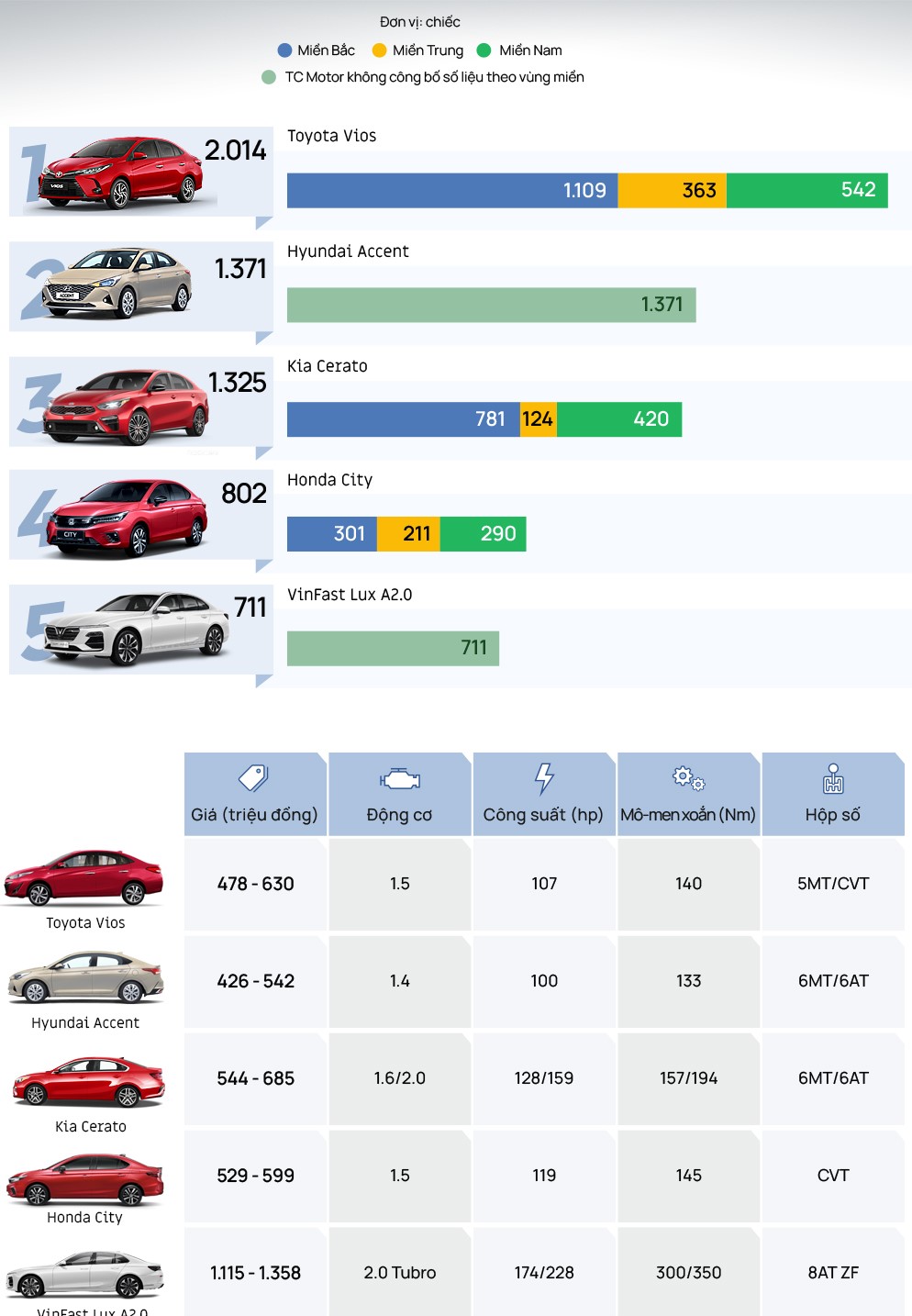 Vios dẫn đầu top sedan bán chạy tháng 6